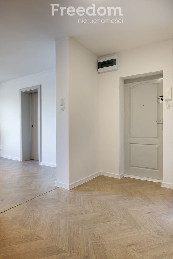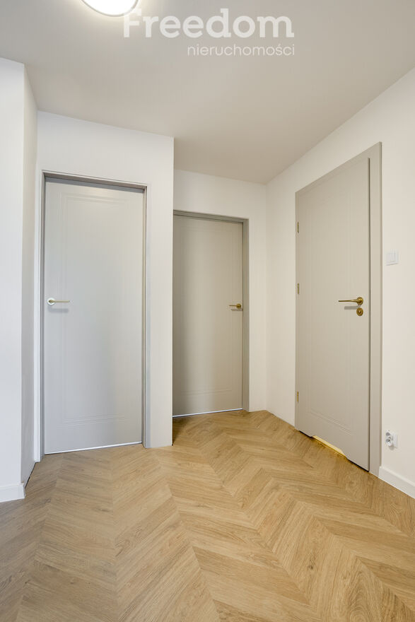 Już od progu widać, że ktoś miał na tą nieruchomość pomysł.Na podłodze piękna jodełka, kaszmirowe drzwi, spokojna kolorystyka