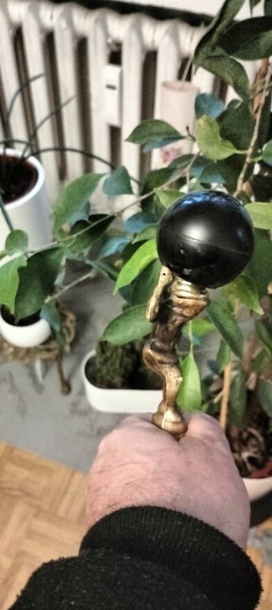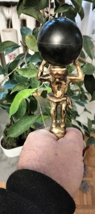 pierwsza laska rekojeśc mosiezny herkules dzwigajacy kulę ziemska , drzewiec na dole okuty równiez mosiadzem, druga przedwojenna po gruntownej renowacji. ponad 60 nabitek austria, szwajcaria, niemcy. Dół okutycena 250 zł jedna laska