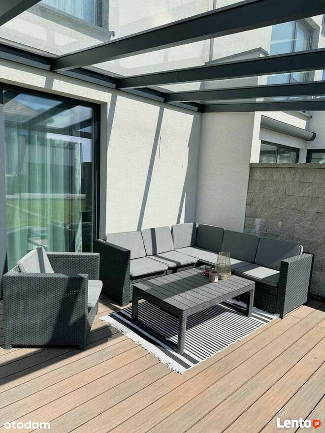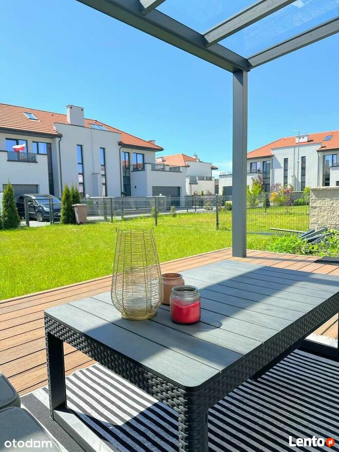 Dom posiada zadaszony taras oraz dwa tarasy na piętrze- idealne miejsce do porannej kawy lub wieczornego wina. Kameralny ogród o powierzchni 100 m2 to prywatna enklawa spokoju- miejsce do zabawy, wypoczynku i spotkań z bliskimi.